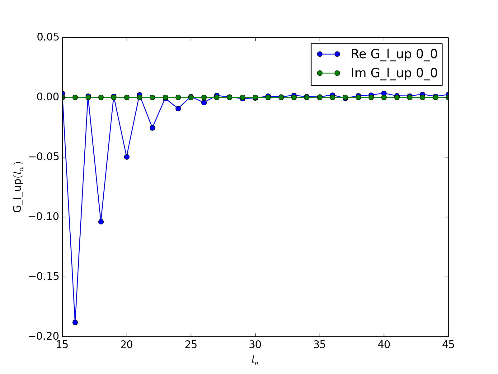 If you use the Legendre expansion, you should also decide on the ideal number of Legendre coefficients to keep for the following runs. If you have saved the Legendre Green’s function in an archive, you can then plot it: